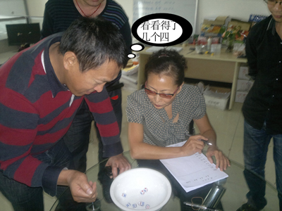 在“筷子夾彈珠”的游戲中,許總在規(guī)定的1分鐘時間內(nèi)夾起了17顆玻璃彈珠,以絕對優(yōu)勢奪得第一。