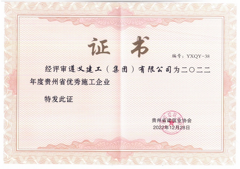 近日,貴州省住建廳、貴州省建筑業(yè)協會通報了2022年度貴州省優(yōu)秀施工企業(yè)評選結果,遵義建工(集團)有限公司再次光榮上榜,已連續(xù)十五年獲此榮譽。