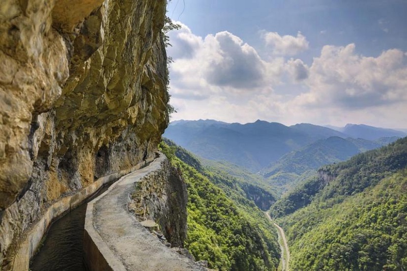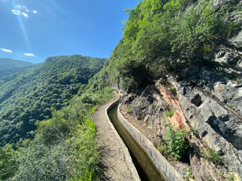 大發(fā)渠位于貴州省遵義市播州區(qū)平正仡佬族鄉(xiāng),這是一條橫跨3個村、10余個村民組,主渠長7200米、支渠長2200米,經(jīng)過3座大山、大小9個懸崖、10多處峻嶺的水渠,其中大土灣巖、擦耳巖和灰洞巖最為險要,要從懸崖峭壁上打出半幅隧道才能通過。上世紀(jì)60年代初,由團結(jié)村草王壩大隊支書黃大發(fā)帶領(lǐng)群眾歷經(jīng)36年用雙手一點點開鑿出來的,水渠的成功修建,結(jié)束了村莊缺水的歷史,改變了村莊沒米飯吃的面貌,被當(dāng)?shù)厝罕娪H切地稱為“大發(fā)渠”。