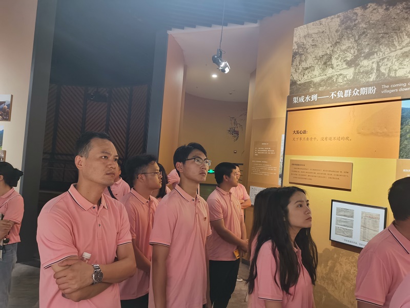 懷著萬分崇敬的心情,20位黨員同志又來到“大發(fā)渠陳列館”參觀,通過一件件工具、一幅幅圖片以及當(dāng)年留下的一頁頁文字信札更深切地了解了大發(fā)渠的修建過程,當(dāng)年修渠的艱辛和不易仿佛就在眼前。大發(fā)渠繞三重大山,過三道絕壁,穿三道險崖,全長9400多米,耗時36載,為了這條生命渠能成功修建,還犧牲了女兒的最佳治療時間,大家深受感動,感受到了一名優(yōu)秀共產(chǎn)黨員的責(zé)任與擔(dān)當(dāng),所有的同志們都得到了一次心靈的洗禮和黨性的錘煉。